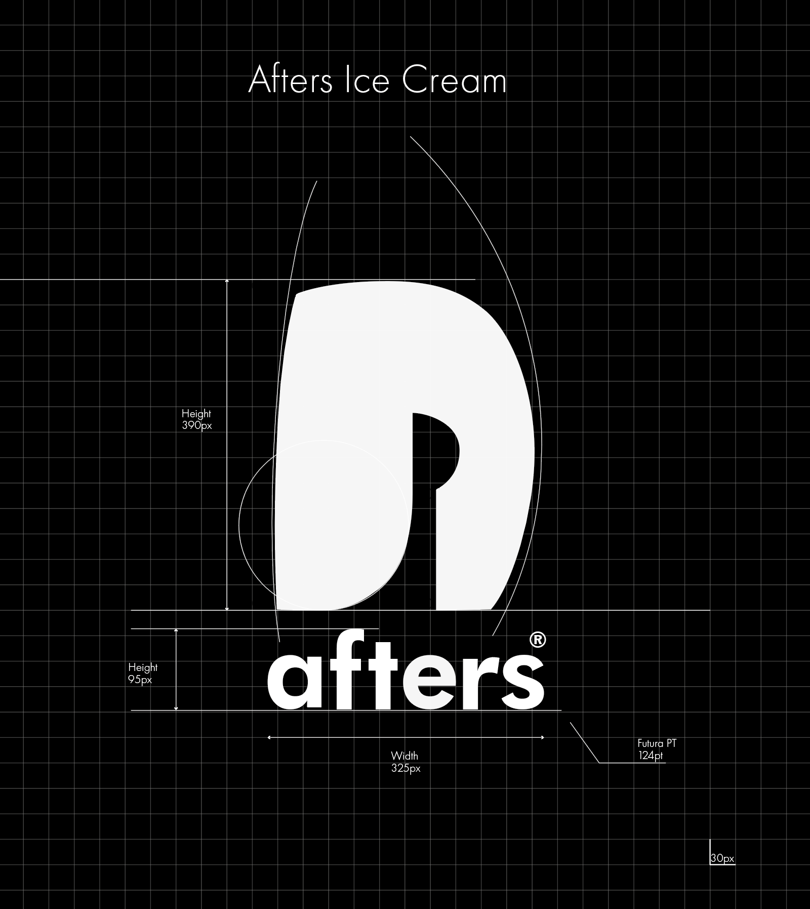 The new logo symbolizes the brand name's initial A. It has better readability through Futura typeface and a wider letter width, spin width, and letter spacing to match the lively feel of the colors of After Ice Cream.