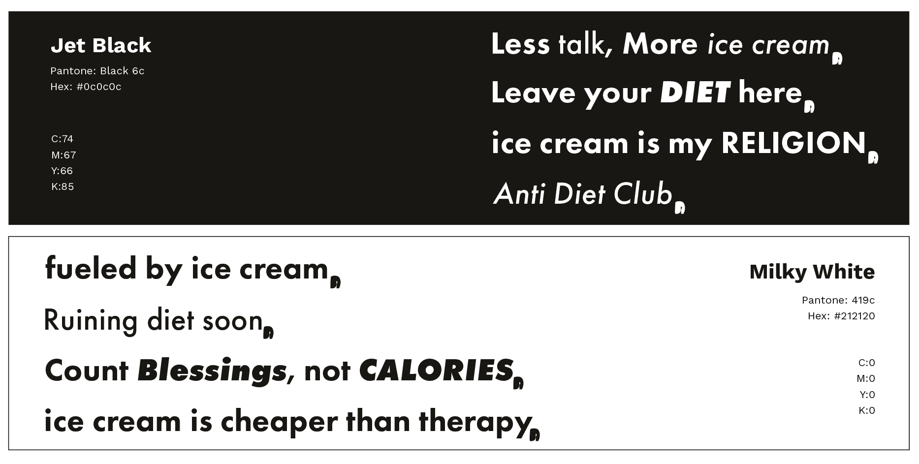 The refined color palette still communicates a handcrafted feel while providing a stable backdrop for the playful, free-spirited colors of the ice cream.
